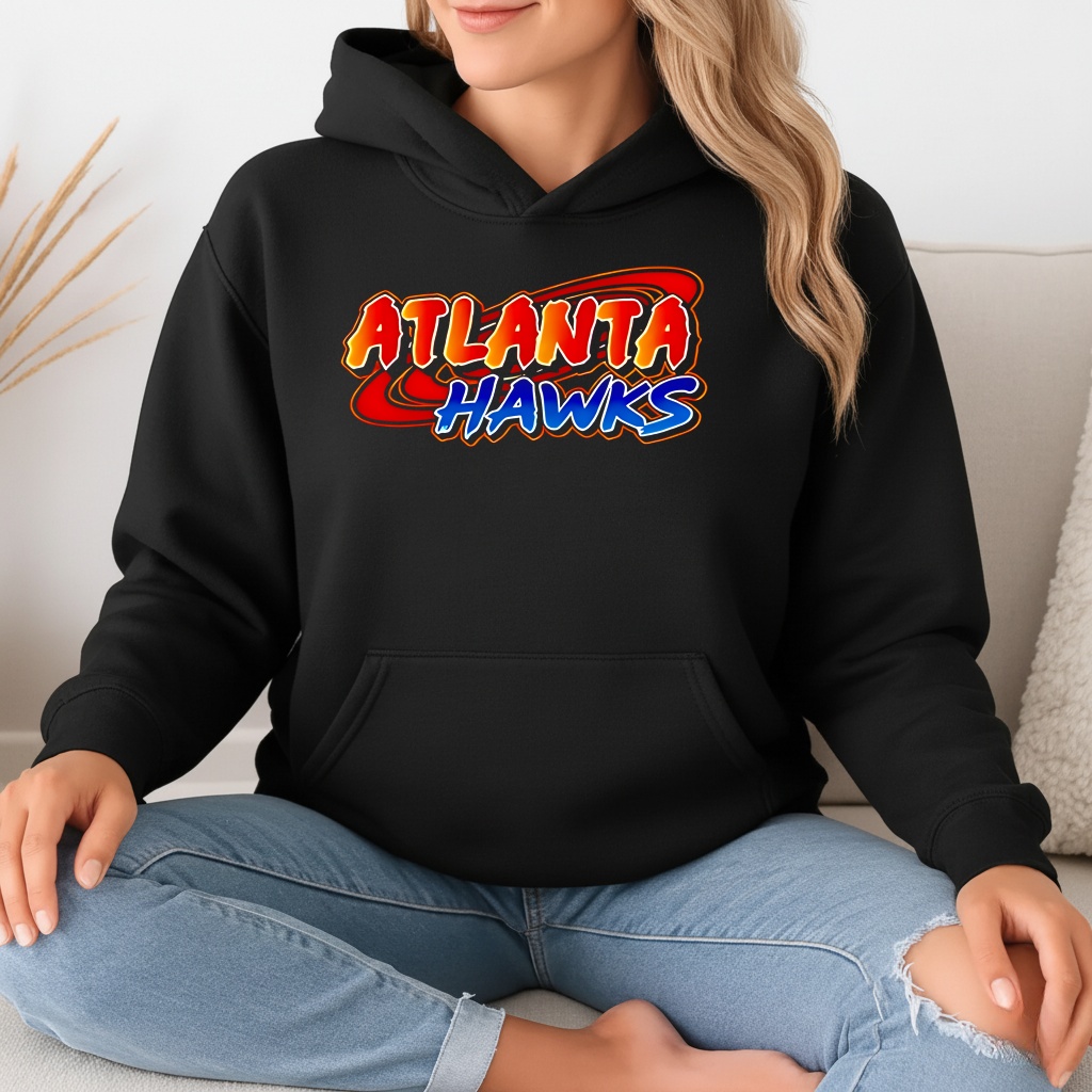 The Naruto influence appears through anime-inspired styling applied to the Atlanta Hawks logo. It adds a sense of motion and bold character while still keeping the team identity clear and recognizable.